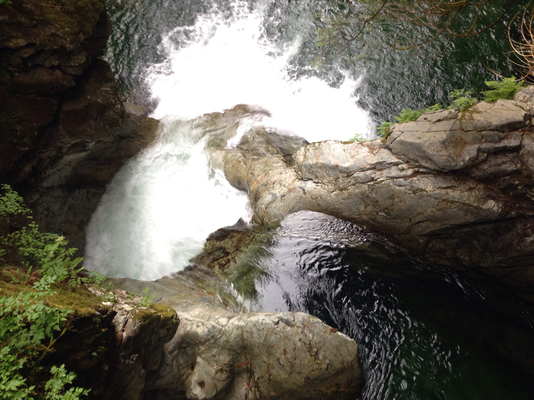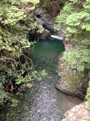 eine Hängebrücke in 50 Meter Höhe überquerten und erneut einen Wasserfall - die Twin Falls - mitsamt wunderschöner türkisfarbener Grotte zu Gesicht bekamen. Der kostenlose Lynn Canyon Park bietet