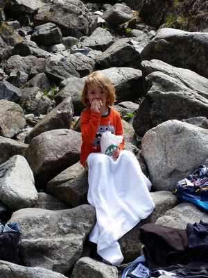 und hängte ihre Füße ins eiskalte Wasser. Für genau 2 Sekunden...
