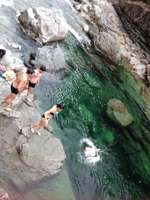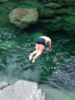 an, die zwar nicht besonders hoch sind, sich dafür allerdings imposant durch eine Schlucht schlängeln. Franzi nutzte die Gelegenheit um auch einmal "cool" zu sein (im wahrsten Sinne des Wortes)