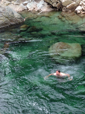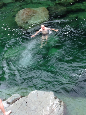 Wir hatten eine Tour gebucht, die uns zu heißen Quellen mit schwefelhaltigem Wasser führte. Die Hälfte der Zeit (die Tour dauerte insgesamt 6 ½ Stunden) verbrachten wir auf dem Wasser. Auf dem