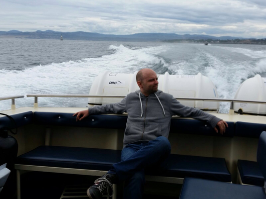 dieFahrtübergeschlafen,ich habe auf einen Punkt gestarrt um meine Seeübelkeit zu überwinden und Marvin und Noah haben die Fähre erkundet. Draußen auf dem Deck konnten sie sogar einen Orka