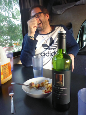 Basketball, Fußball und Tischtennis gut rumgebracht. Den Abend haben wir mit Nudeln und Tomatensoße sowie einer Flasche "Happy Camper" Wein ausklingen lassen. Jetzt freuen wir uns auf