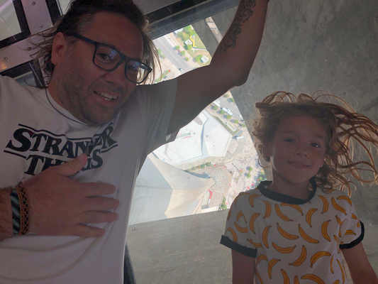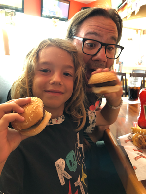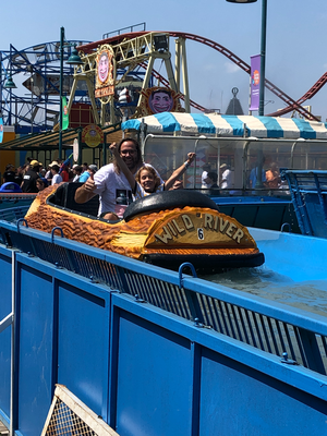 einer Achterbahn, die sich immer wieder im Kreis drehte, was Noah und Dominic nicht gut bekam. Außerdem fuhren Noah und ich den Freefall-Tower. Nach einer ganzen Weile trafen sich alle wieder am