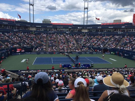 ihren Eltern auf der anderen Seite bis zum Abend trennten. Noah und ich schauten uns den Rogers Cup, ein Tennisturnier der Damen, an und hatten dort unseren Spaß. Mein Sohn staubte sogar das