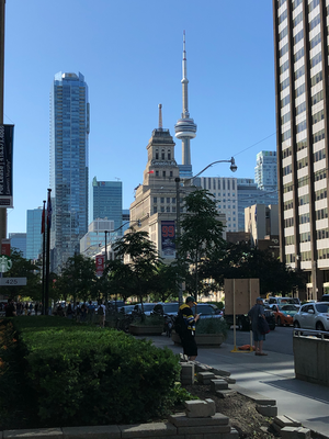 und bestiegen den Hop-on-Hop-off-Bus. Während der Fahrt konnten sich unsere Füße vom 10 km Erkundungsgang erholen und wir erfuhren interessante Fakten über Toronto; zum Beispiel, dass nur 50% der