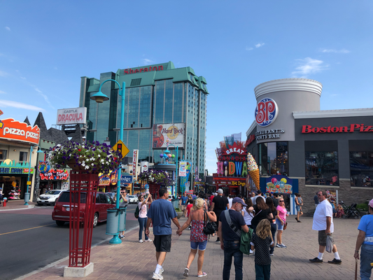Nach einer zweistündigen Zugfahrt erreichten wir Niagara by the Falls. Die gesamte Stadt ist grell, bunt, laut und gleicht einem riesigen Vergnügungspark. Die größte Attraktion bilden