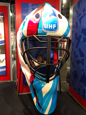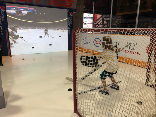 für Noah war der interaktive Teil. Er versuchte sich als Goalie gegen virtuelle Hockey-Superstars. Wer sein Video sehen will klickt auf den Link http://www.hhof.com/PMCS/guest/video/00190810150617 . Anschließend