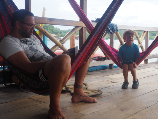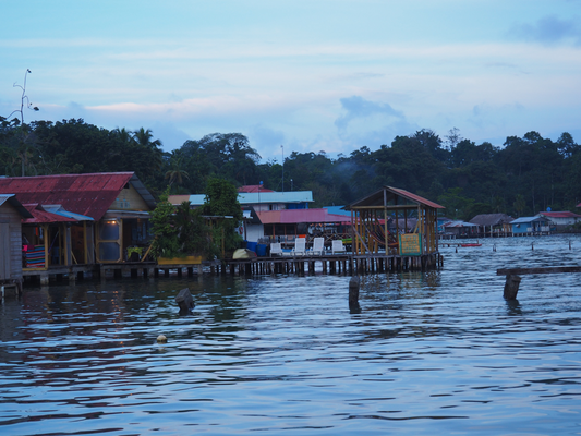 und dennoch alternativlos. Heute morgen kamen wir dann nach zwei weiteren kurzen Bootstransfers in unserem auf Stelzen über dem Meer (Karibik) liegenden Hostel an. Nach kurzem Ausruhen und