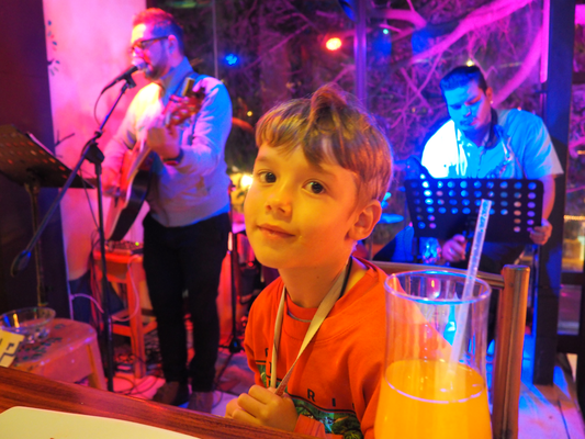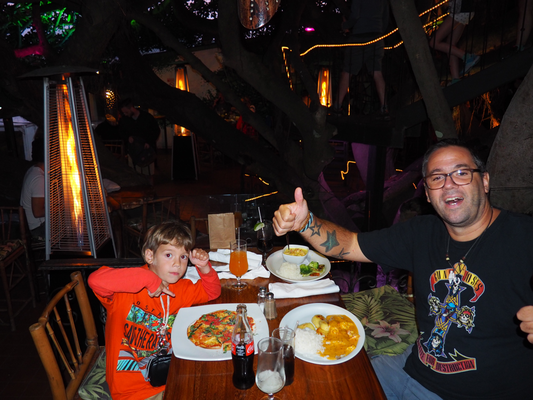 Abends haben wir endlich Dominic's Gutschein von Jannik, Maxi und deren Familien eingelöst. Wir waren im ,,Tree House'' hier in Santa Elena. Das Restaurant ist um einen Baum herumgebaut. Und auch
