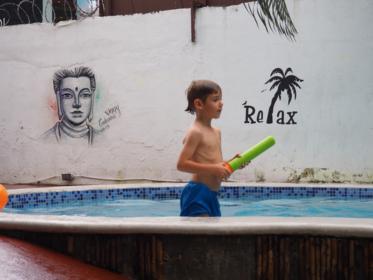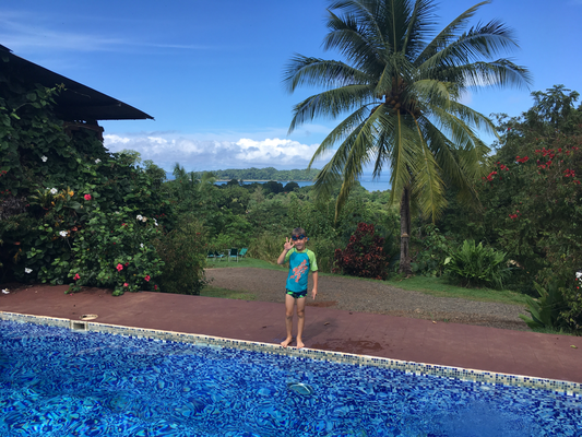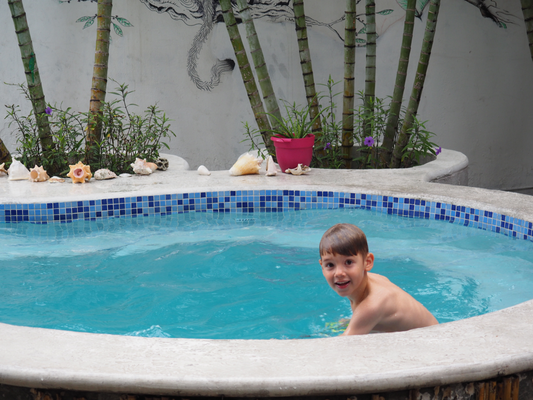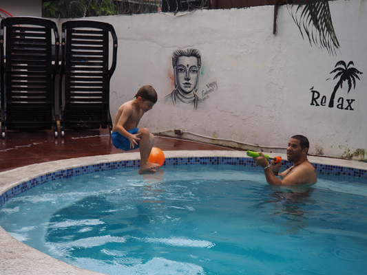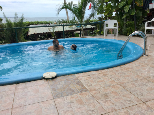 Cahuita an. Daher war noch ausreichend Zeit, um Noah im Pool zu bespaßen und in unserer schönen Bungalow-Anlage zu relaxen. Unser Zimmer ist schön groß (das Bad auch) und wir haben sogar einen