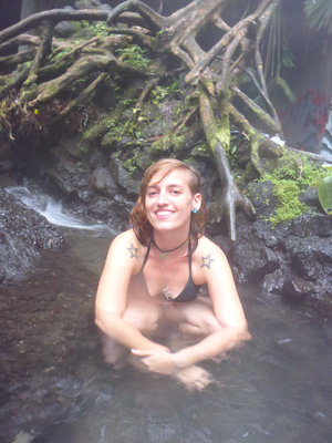 warmes Wasser führt. Die Quelle des Flusses liegt so nah am Vulkan, dass das Wasser badewannenwarm ist. Nach dem Bad beendeten wir den Tag mit einem Besuch in der ,,Chocolateria". Eine echte
