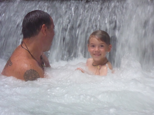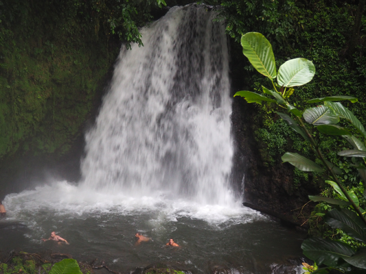 einlud. Mit Hilfe unseres Guides gelangte ich sogar in die Höhle direkt hinter dem "Auge" des Wasserfalls - herrlich. Noah war allerdings traurig, nicht mit ins Wasser gedurft zu haben, aber zum