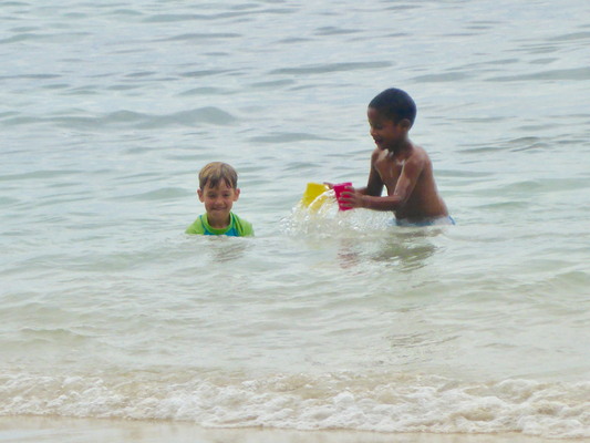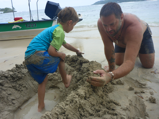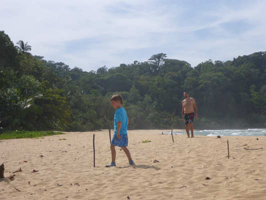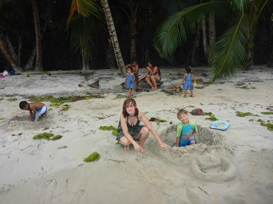 Fußballspielten oder surften. Uns und besonders Noah gefiel es sehr gut, und es wurden Wassergräben und Festungen aus Sand minutiös konstruiert. Mit Ismael, einem gleichaltrigen panamesischen