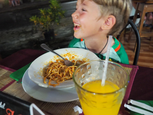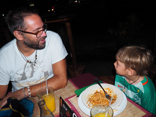 Abends gingen wir dann wieder essen und bekamen tollen Fisch für wenig Geld serviert. Noah zählte Geckos an der Wand und unterhielt ein deutsches Pärchen am Nebentisch...