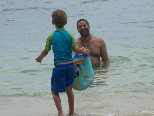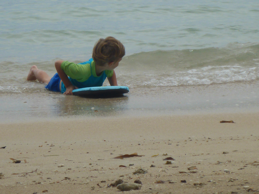 meine Handzeichen richtig deutete. Er holte mich mit seinem Surfbrett wieder an den Strand... definitiv mein Fehler, zumal ich Noah immer und immer wieder auf die Gefahren des Wassers und des