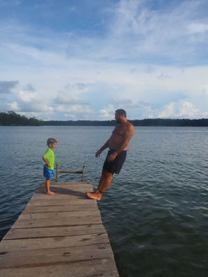 unterschiedlichsten Tiere mit unseren Taschenlampen erspähen konnten. Vor allem Noah war von Vipern, Vogelspinnen, Faultieren, Tukanen, Fröschen etc. beeindruckt. Danach wartete unser Bett auf uns,