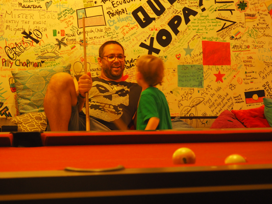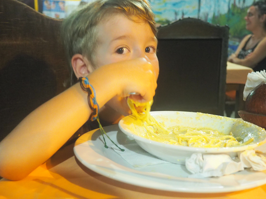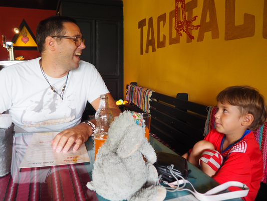 Besonders fasziniert war Noah von dem dortigen Öko-Plumsklo, das mit Sand/Mulch-Spülung funktioniert. Immernoch nicht müde, aber Pizza-hungrig besuchten wir am Abend noch das Restaurant Tio Toms,