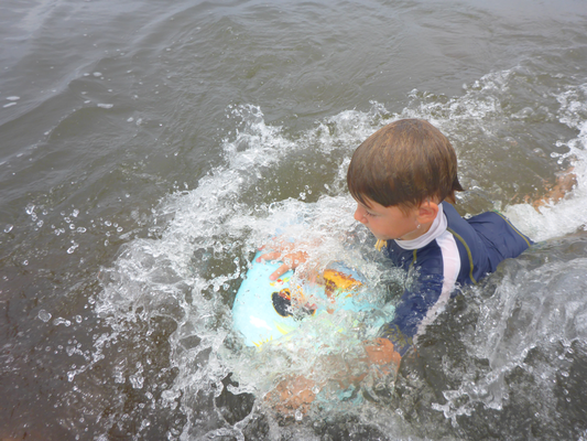 die am Strand patrouillierten, auch nochmal wissen ließen. Daher war es klar, dass ich mit Noah nur in unmittelbarer Nähe zum Ufer ins Meer ging und wir dort spielten. Irgendwann wollte ich