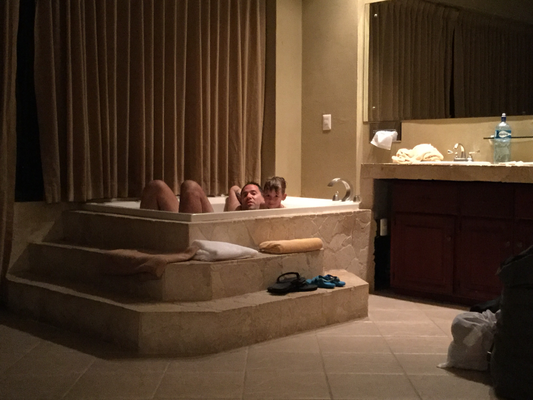 Zu guter letzt ließ unsere Gruppe den mittlerweile späten Abend in heißen Quellen ausklingen, Franzi und Noah blieben jedoch im Bus. Da wir einen kostenlosen Transfer zu den Quellen haben, werden