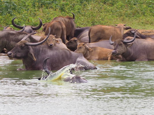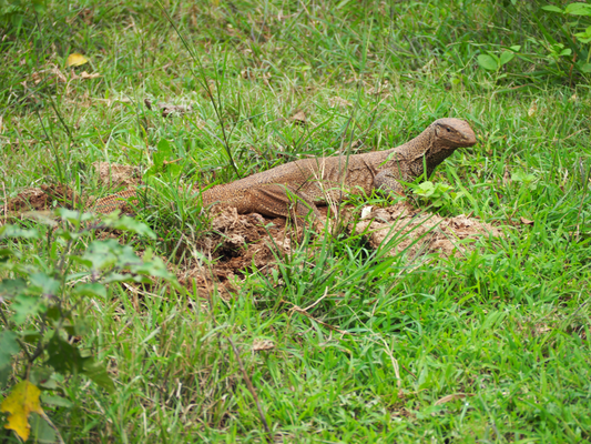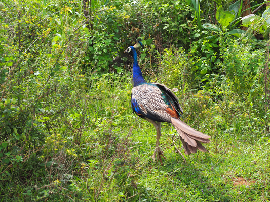 zweistündigen Safari bekamen wir die unterschiedlichsten Tierarten zu Gesicht, darunter Wasserbüffel, Rehe, diverse Vogelarten, einen Waran (den Adlerauge Noah entdeckte) und massenweise Pfaue.