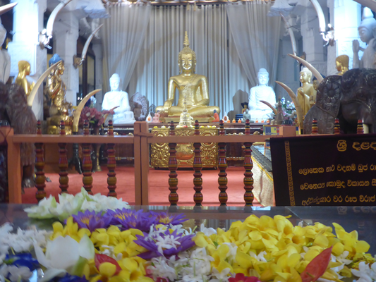 Wir sind mit dem Auto zum Banhof gefahren. Wir sind mit dem Zug nach Kandy gefahren und sind in den Zahntempel gegangen. Dort gab es mehrere Buddhas und Bilder von Menschen. Dann sind wir mit