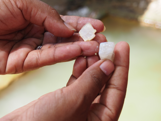 Der nächste Stopp brachte uns zu einer Edelstein-Miene. Dort konnten wir sehen wie die Steine, vor allem Mondsteine, geschürft werden und anschließend von Hand geschliffen und poliert. Blauen