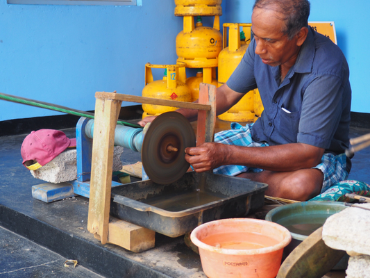 Mondsteine kommen nur in Sri Lanka vor. In der letzten Werkstatt war zu sehen wie Gold- und Silberschmuck von Hand gefertigt und mit Edelsteinen verziert wird. Natürlich konnten wir nicht fahren