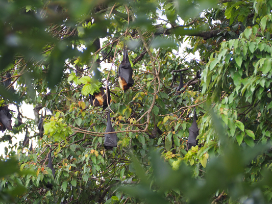 Nach dem Abendessen im Hotel ging ich mit Noah noch in den Pool und an den Strand, wo wir große Krebse und Flughunde entdeckten.
