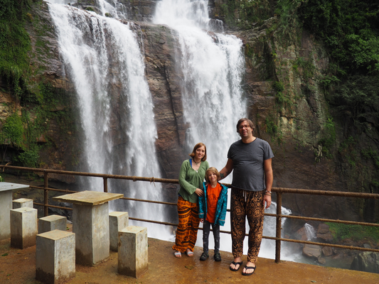 demAutozur teefabrik gefahren da haben wir eine Tasse Tee getrunken. Wir sind mit dem Auto zu einem Ausichtspunkt gefahren. Wir haben in einem schicken Hotel an einem Wasserfall übernachtet.